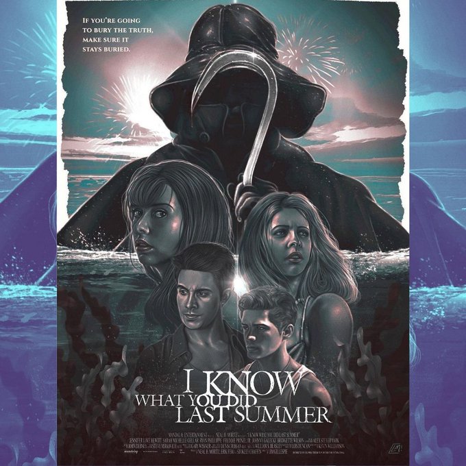 NEW POSTER! Here’s my brand-new take on one of my all-time fave #horror films, “I KNOW WHAT YOU DID LAST SUMMER”. What’s your favorite part of this thrilling film? 🖤💀#iknowwhatyoudidlastsummer