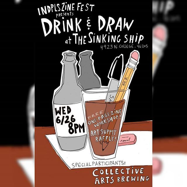 Actually did some art tonight, flyer for an #INDPLSZineFest2019 event! #indianapolis #drinkanddraw #urbansketchers