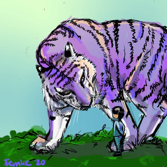 This evening rolling paper got me thinking about Taehyung and I made some fanart a while back. The fierce purple tiger walking with him #IPURPLEYOUTAEHYUNG #taehyung #v #FESTA2020