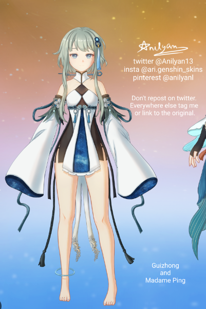 I see few people theorize that Guizhong was one of the moons, which is something I believe (with goddess of flowers as other moon), but with how much she looks like Griseo from #honkai (creator, candidate for being the primordial one)… I’m convinced