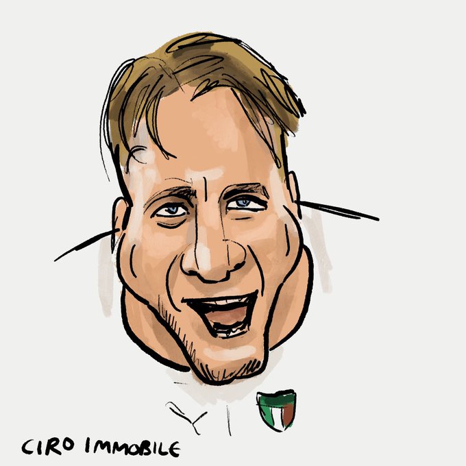 Just finished drawing Ciro Immobile the scorer of Italy’s second goal in #turita just as Italy scores a third and Ciro is subbed off #euro2020. Italy impressive in second half. #procreate