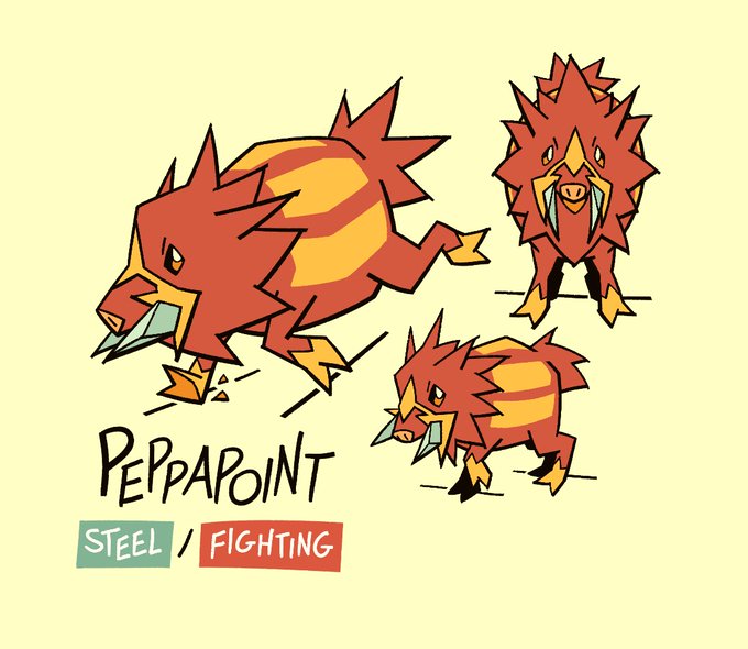 it's fakemon time, y'all. Introducing a couple of the Axton region's premier Pokemon, Peppapoint and Javelancer! Known for their iron will and focused combat tactics, this hefty javelina is adept at both offense and defense. Just watch out for Fire Blasts, or it'll be BBQ 😰🐗⚔️