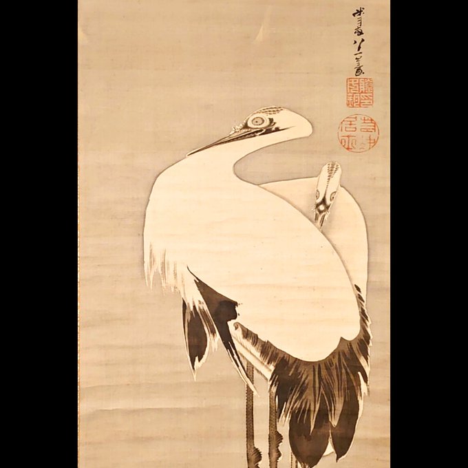 #伊藤若冲 #若冲 #日本画 #art #japanesepainting #掛軸 #絹本彩色#japaneseart#jakuchu #近世絵画 #鶴