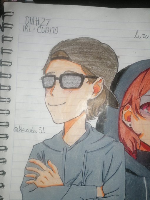 Día 27: IRL + cubito, me divertí haciendo este dibujo ya que realmente tengo un gran aprecio y cariño hacia Luzu como para dibujarlo a el junto a su cubito -llora brillitos-