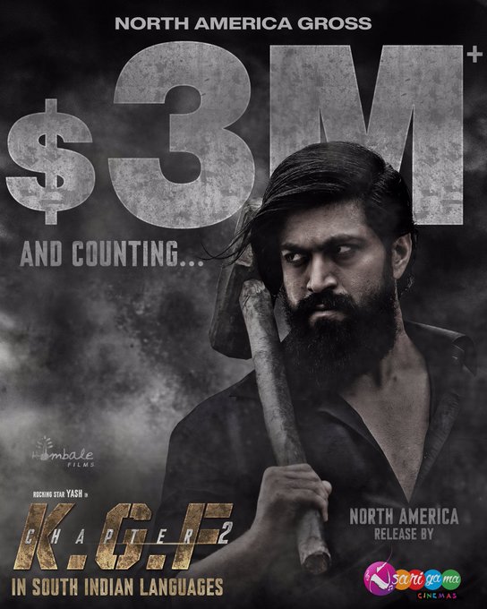 #KGF2 North America (South Indian Languages) release by @sarigamacinemas
