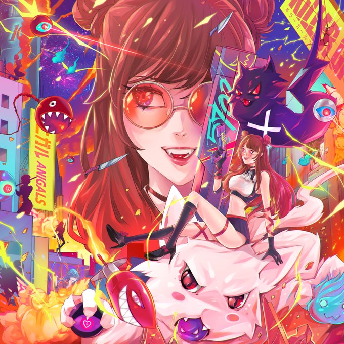 Insane artwork by @animalparade1 Yokai Demon School. Commissioned derivative of @killergfnft #2060. 😼👻🔪