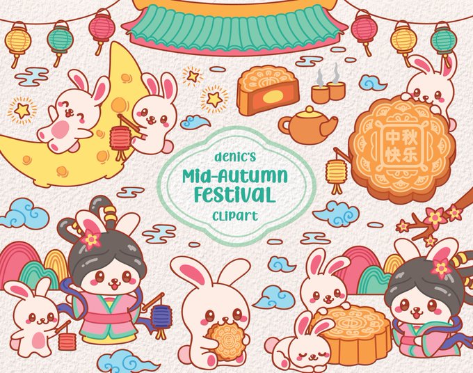 Excited to share this item from my #etsy shop: Mooncake Festival Clipart, Mid Autumn Rabbit, Kawaii Mooncake, Cute Illustration, Digital Download, PNG, Lineart Clip Art, Nursery Printable #kawaiimooncake #midautumnrabbit #kidscrafts