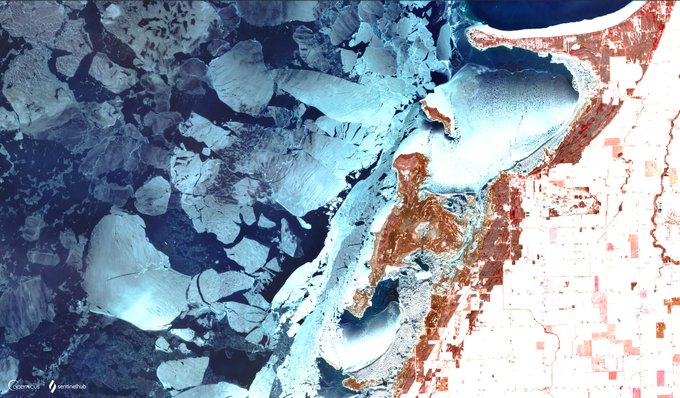 This 🤩 image of crumbled ice 🧊⛸️ along the shoreline in #SaginawBay, #Michigan was inspired by @kosmi64833127's beautiful find!