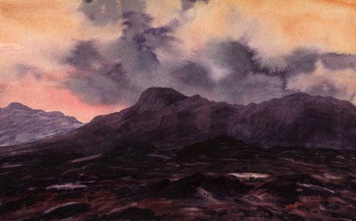#watercolour #painting On Blea Rigg, Dusk Over the Langdale Pikes #LakeDistrict