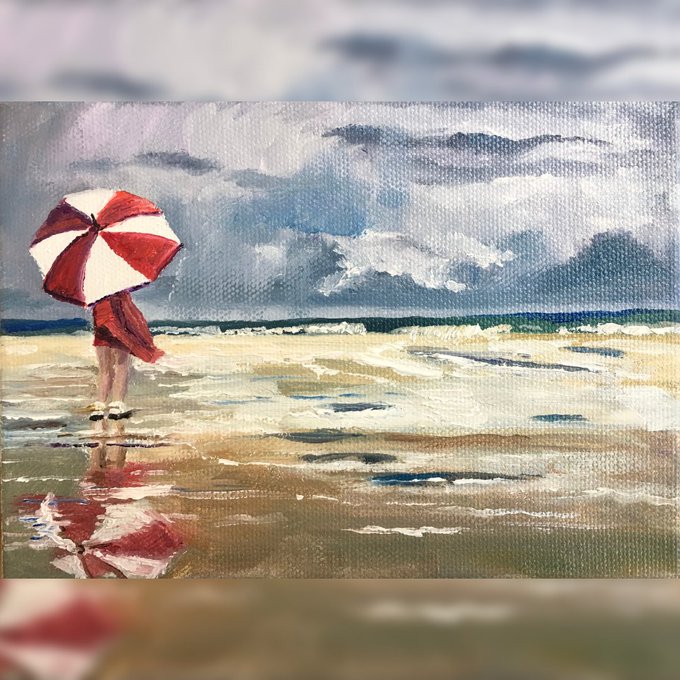 Sunset at the beach with Ellie! ☀️ (6” x 8” oil available for purchase)