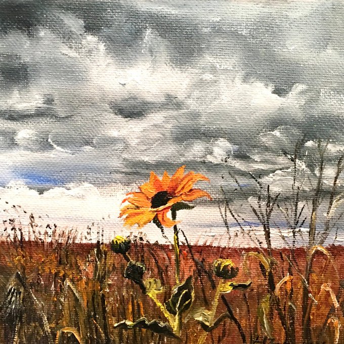 “Last Flower of Summer” 🌻 (small oil. 5x7)