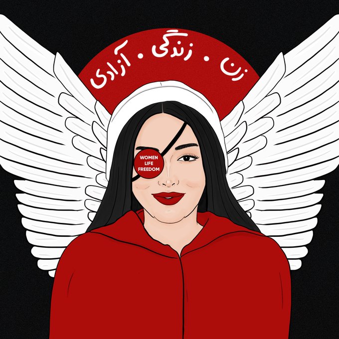 Security forces take an eye of Ghazal Ranjkesh by shooting in her face. Iranian people are living The Handmaid’s Tale!