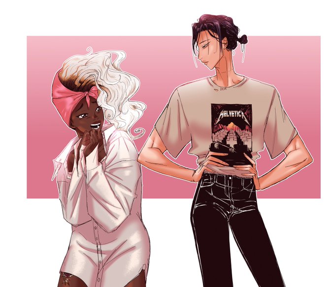 A lot of ppl were asking to see Mor in Dom's new untailored shirts, but I realized Morgan has an oversized style and that means Domi can also have a babygirl moment in her Metallica parody tee