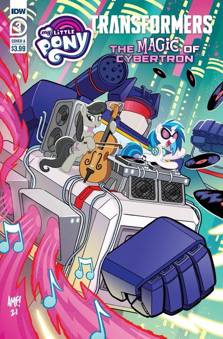 MLP/Transformers II #3 revealed! Evil plans continue to spell trouble for our unlikely heroes! Meanwhile, Vinyl Scratch, Octavia, and Soundwave have to figure out how to work together! Coming this June! @JamesAsmus @TonyFleecs @Pr1ps (Variant cover by @Andernell)
