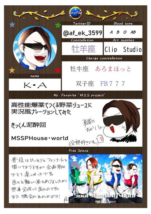 黒野ショコラちゃんの企画に♊︎F、♉︎Aで参加しておりました…!今までとは違った形で彼らを描くことができて楽しかったです。またご縁があればよろしくお願いします✨