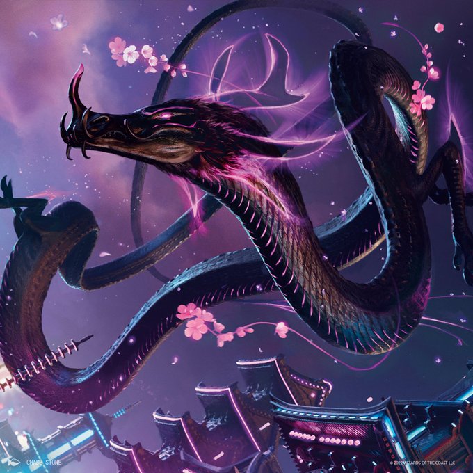 After Kokusho died protecting the citizens of swampy Takenuma, he was reincarnated as #MTGNeon Junji. Junji then relocated to the canals of the Towashi undercity, his presence a constant, silent warning that keeps the peace among the Reckoners.