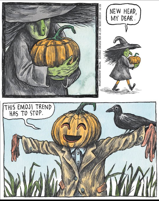 (From Macanudo, @linierscartoon)#Halloween #scarecrow #jackolantern #witches #comicsoftheday #halloweeniscoming