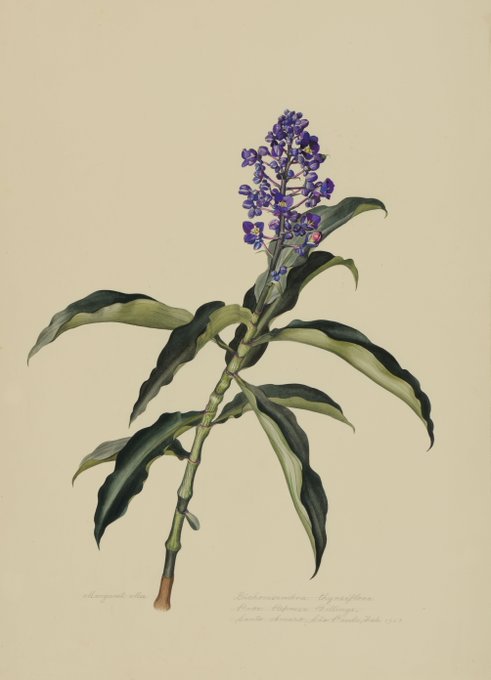 For #InternationalPlantAppreciationDay, meet our Dichorisandra! #MargaretMee painted this in the Amazon, but today, this member of the spiderwort family can be found in our greenhouse! Visit our newest exhibit Margaret Mee: #PortraitsOfPlants online: https://t.co/QDLZ1AygLx.