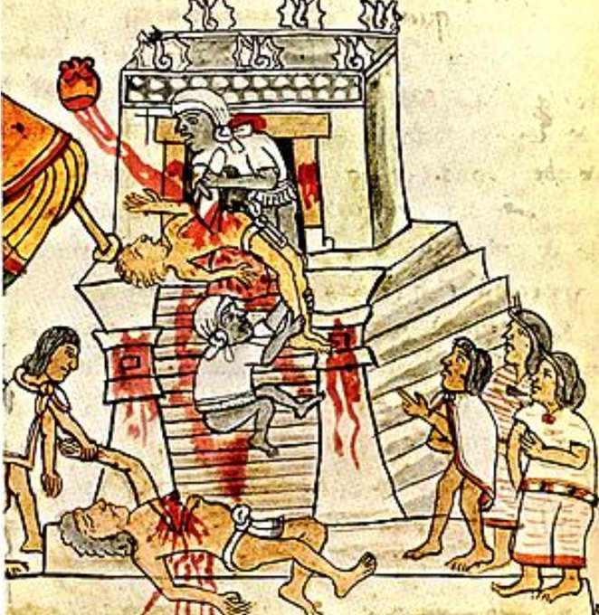 Human sacrifice was a way of life for Ancient Mesoamerica. In the Aztec creation #myth Quetzalcoatl-Ehecatl stole bones from the Underworld to make the first humans. So sacrifices were a necessary apology to the gods, to nourish them with sacrificed blood & flesh.#mythologymonday