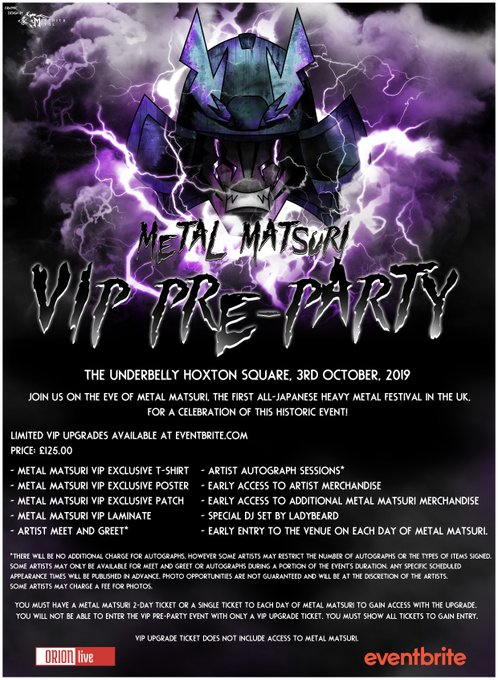Oh and by the way, did you hear that #MetalMatsuri also has a killer VIP Pre-Party? Oh yes it does! Check out the information right here as you're not going to want to miss this!!!🤘@ORIONlive_UK #MetalMatsuri #ORIONlive #HeavyMetal #Metal