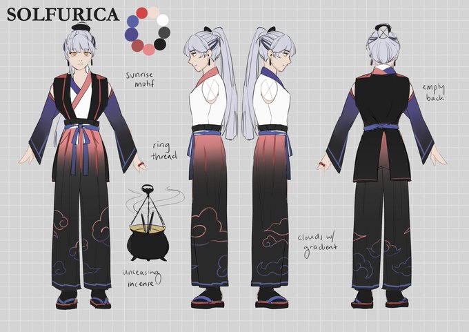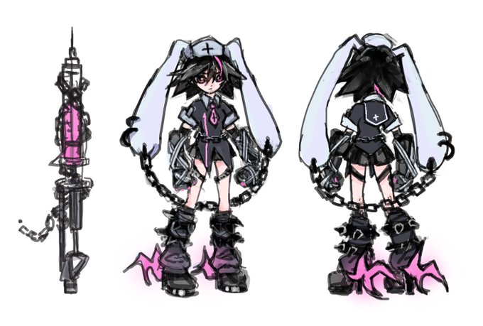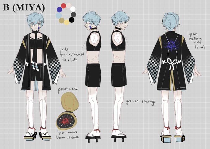 Initial orthographic sketches for the outfit designs that were used for team 死のBRINGER in #MoRCB!