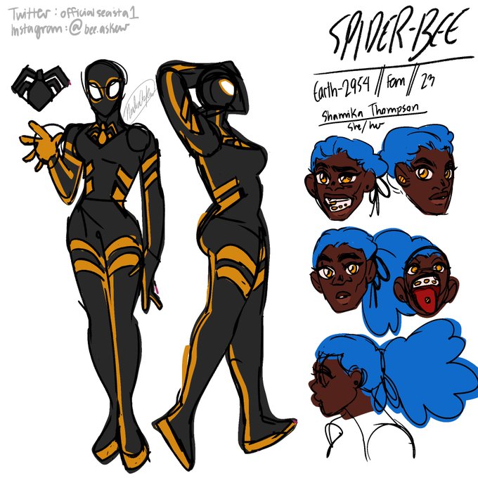 Heres Spiderman 2099 with my spider oc SpiderBee :3