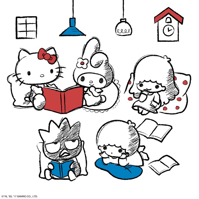 Looks like @HelloKitty, #MyMelody, The #LittleTwinStars, & #BadtzMaru are reading books together! Do you have any plans for #SundayMorning?