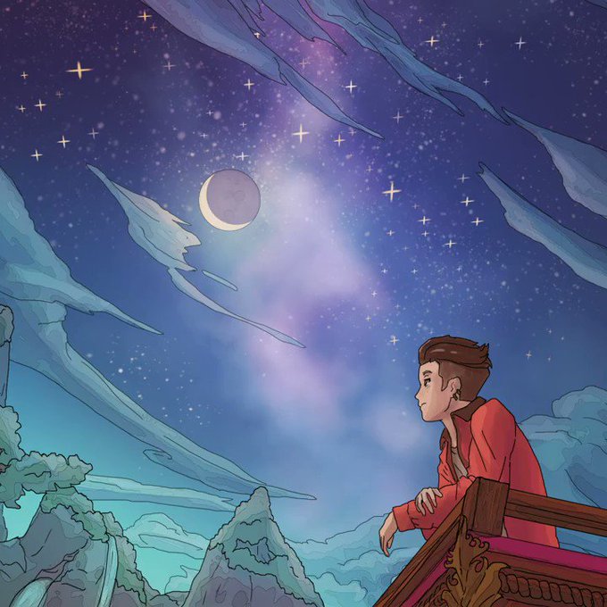 heute gabs in der 45min runde: @HenriHuhn fliegt auf einem riesen Huhn bei Vollmond am nachthimmel entlang
