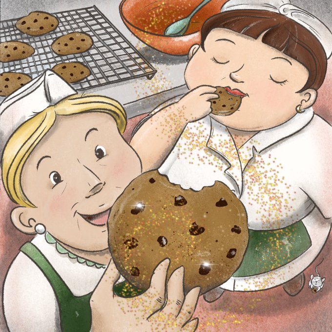My submission for the @scbwi #narrativeartaward . A take on the discovery of #chocolatechipcookies cookies for the theme #silverlinings. 😋🍪