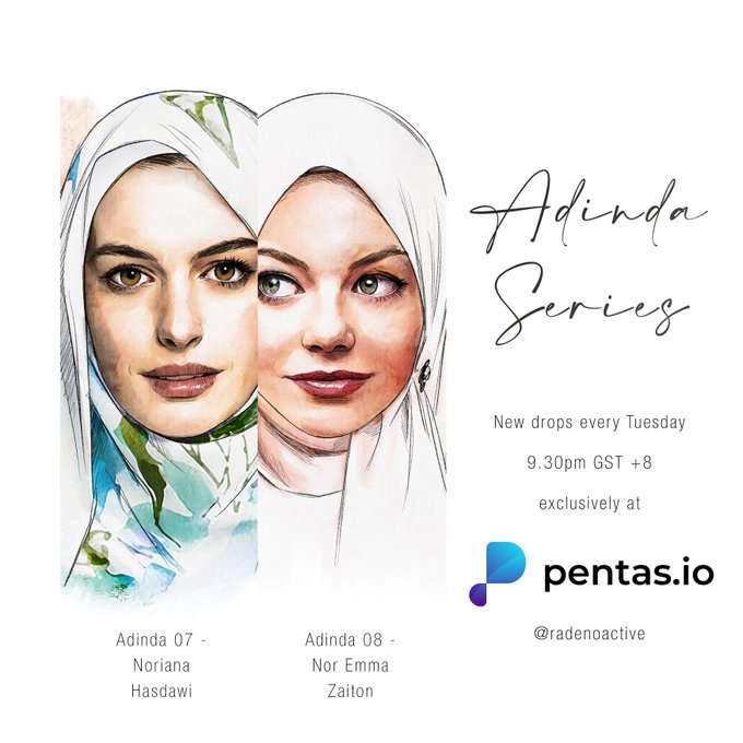 3rd weekly drop for my NFT series - Adinda Series! Introducing: 07 - Noriana Hasdawi and 08 - Nor Emma Zaiton
