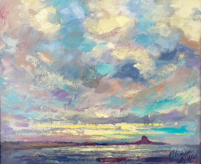 If you get a chance to pop into the gallery on Grey st, Newcastle you’ll be able to see this wee beauty which is an original painting of Lindisfarne off the coast of Northumberland.
