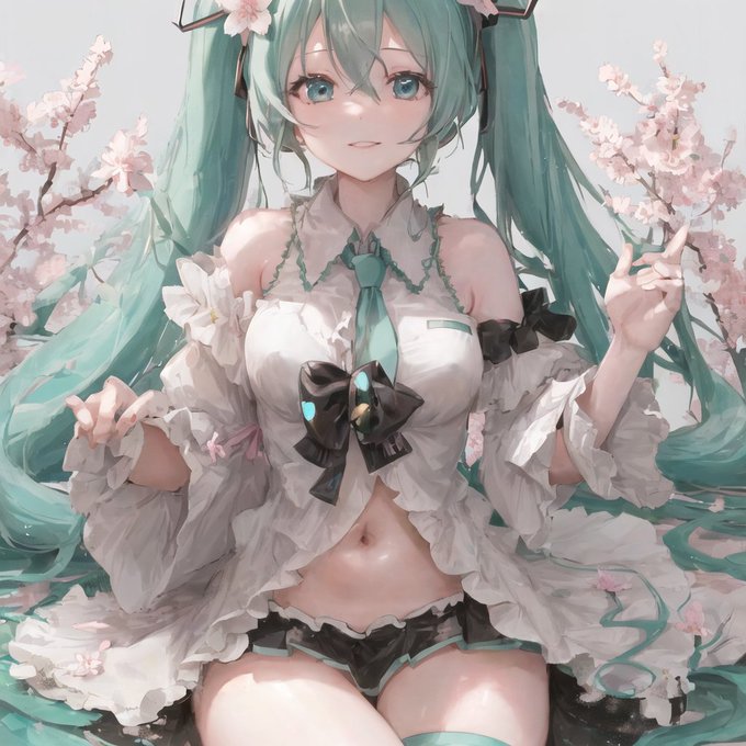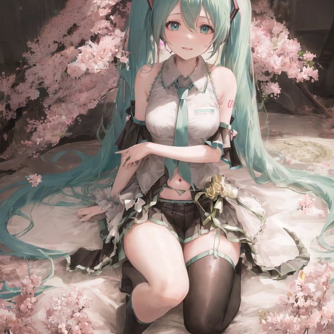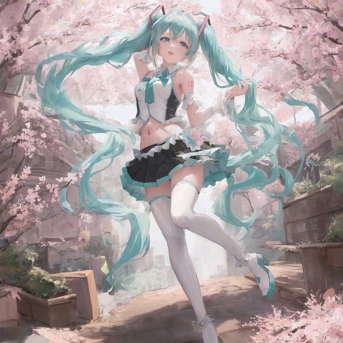 でポーズを作って桜と初音ミク!