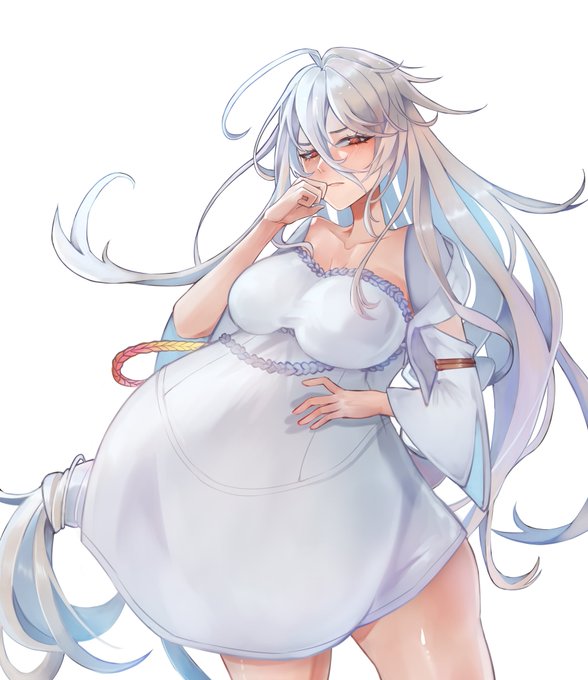 Shiraori gets upset from overeating the grilled pork, and her belly bulged out.