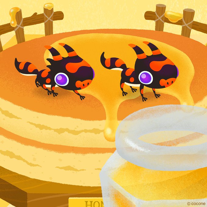 Two of them are taking a break on the hill of pancakes🥞, and the other two are hanging by the honey-hued flowers🌸 How sweet!