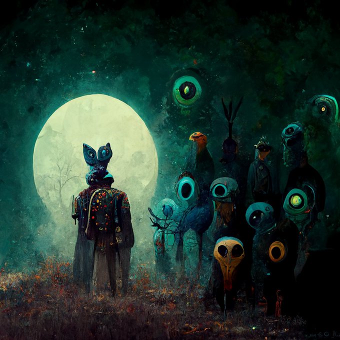 Last night I tried to use MidJourney AI arts and generated the keywords "squirrel, moon, alien, zombie, kris, peacock, secret agent, blacksmith, rain shaman"