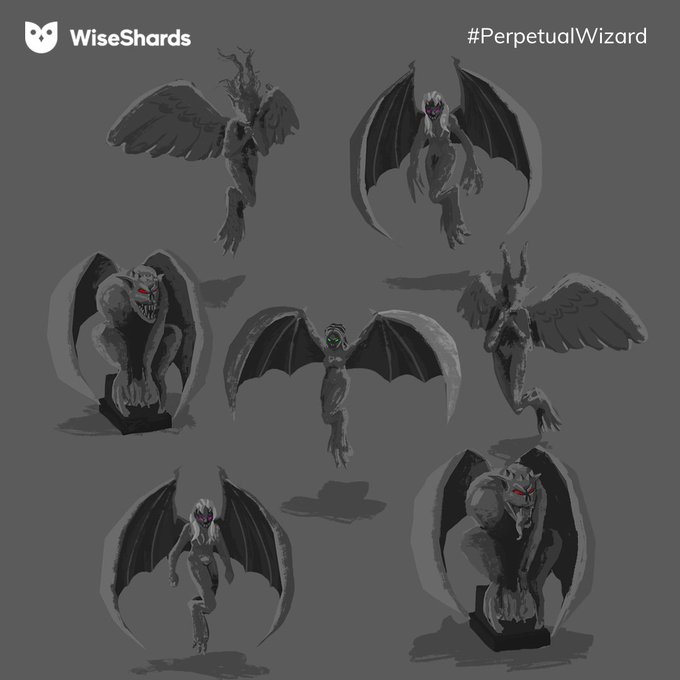 Some enemies concepts for @wiseshards that belongs to the game #perpetualwizard (an #idle #magic #rpg) #conceptart #concept #game #enemies #wizard #characters #characterdesign #spider #witch #mimic #gargoyle #monster #draw #drawing #gameart #golem #schollar