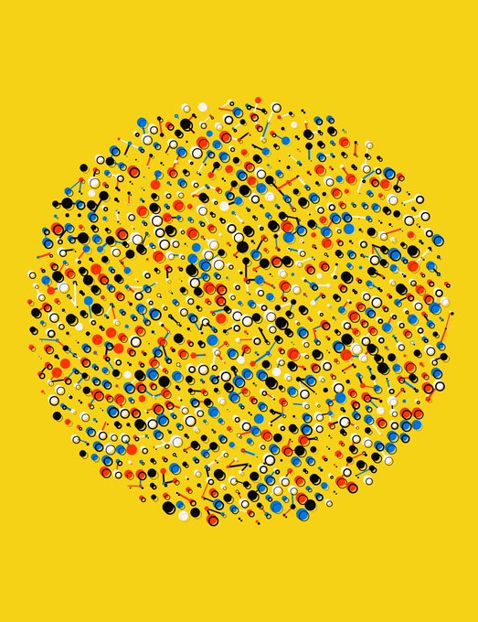 What you get when you combine @KaufmanRoni polka dots and @ippsketch phyllotaxis patterns 😁 #p5js #creativecoding