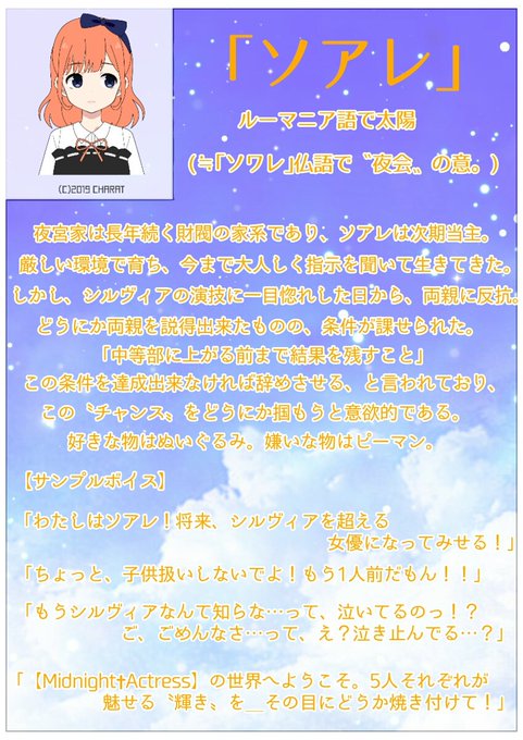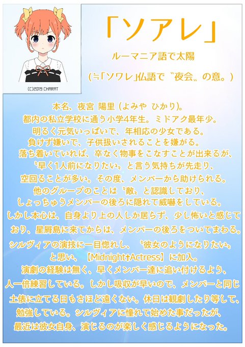 ミドアク子役の、夜宮陽里こと〝ソアレ〟の親、さくと申します!