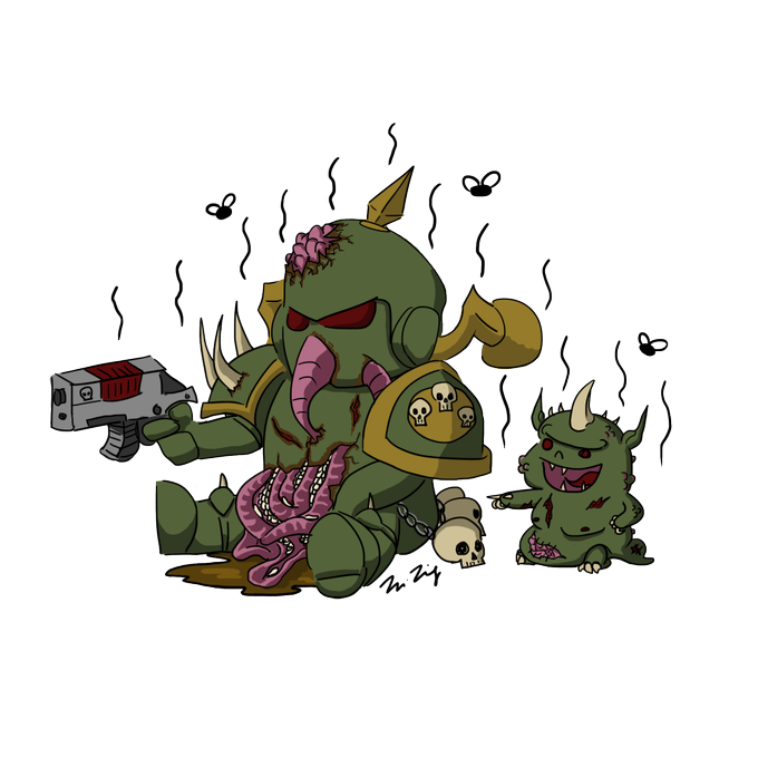 Just finished a piece for @Jon8112 #warhammer40k #plaguemarines #nurgling #fanart #chibi #digitalpainting #illustration