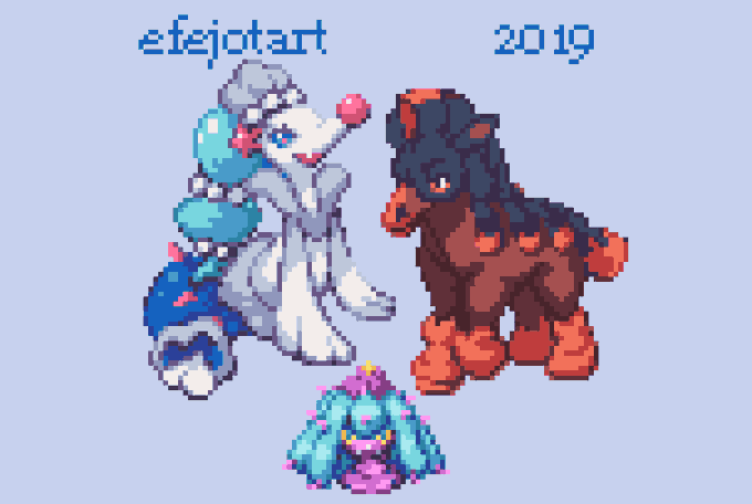 @yoshidinosaur 4th entry!: "Primarina, Mudsdale and Mareanie" from "Pokémon Sun". (3DS) // I named them after flowers in my game: Pereskia, Parsley and Carpobrotus. #pokémonsun #pokemonsol #alola #pixeldecember Here's another drawing around my Pereskia: https://t.co/lP1PKB1GGm