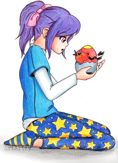 A young Artzy receiving her first pokemon.