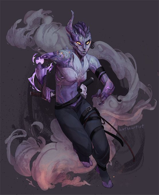non-pf oc so i post her here... she's a demon witch who is called the Curseweaver bc well. she literally created all curses in the world. *apparently* she got her prized possession, Fate's Finger, by biting off the finger of the goddess of magic when she was created