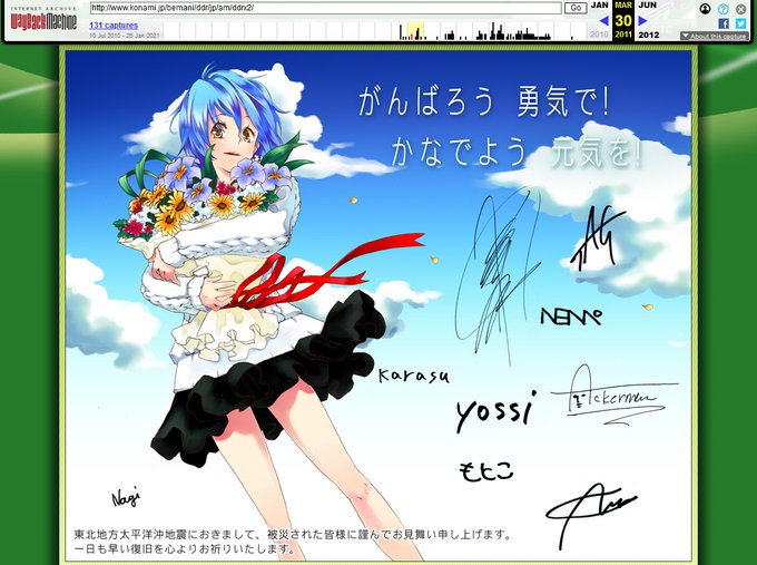 10年前のDDR X2の公式サイトには、こんな東北を応援する描き下ろしイラストが掲載されていたんだよね