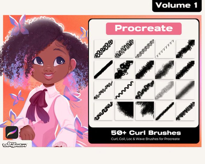 The brushes featured in this video are the vol 1 curl collection & highlight collection for for Procreate, Clip Studio Paint, & Photoshop