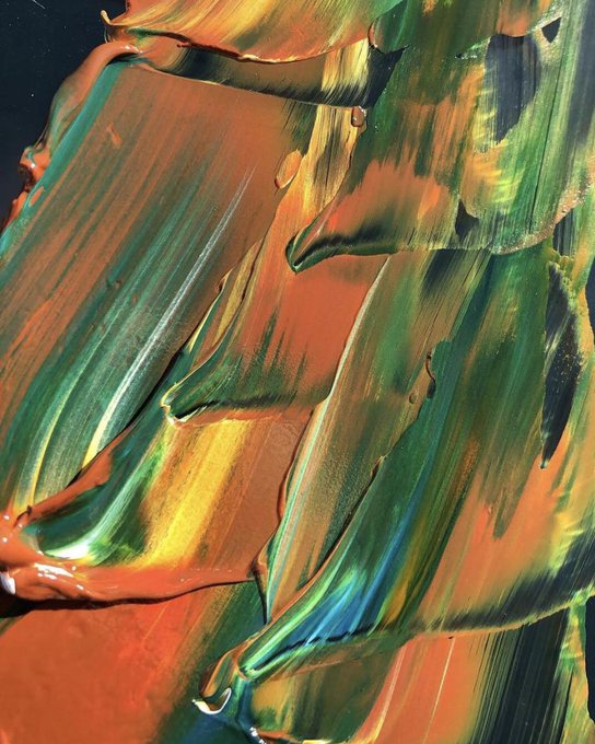 Beautiful things happen when you mix #MHOilPaints - This is a shot of my palette right now. I’m playing around with my #QuinacridoneGold #CaribbeanTurquoise and #WarmWhite