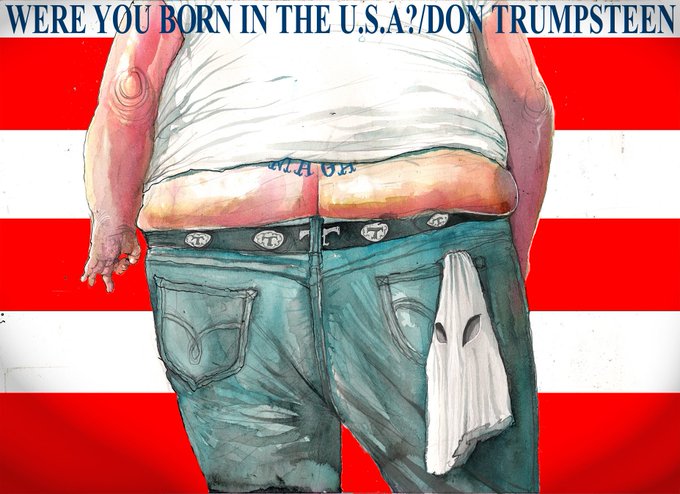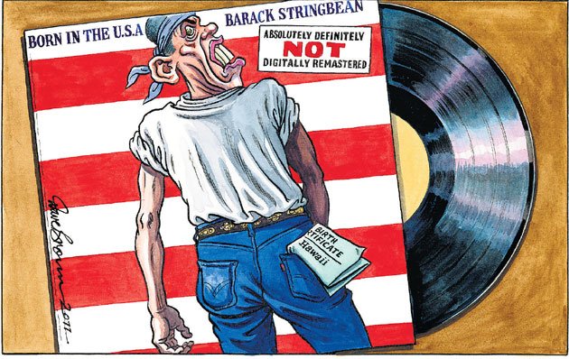 Fantástico #RacistInChief de @roweafr; y buena ocasión para recordar que @BarackObama tuvo en 2011 su 'Born in the USA' de @DaveBrownToons cuando se cuestionaban sus orígenes