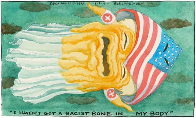Steve Bell on Donald Trump and accusations of racism #Trump #RacistBone ##RacistPresident #RacistInChief - political cartoon gallery in London https://t.co/dePcTdnXF6