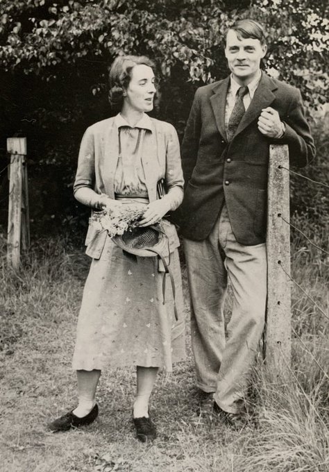 Two Women in A Garden, Eric Ravilious, 1932. Painted at Brick House, Great Bardfield in #Essex, it depicts Tirzah Garwood, Eric’s wife, and Charlotte Bawden, who was married to artist Edward Bawden. The original artwork is in the collection of @FryArtGallery.
