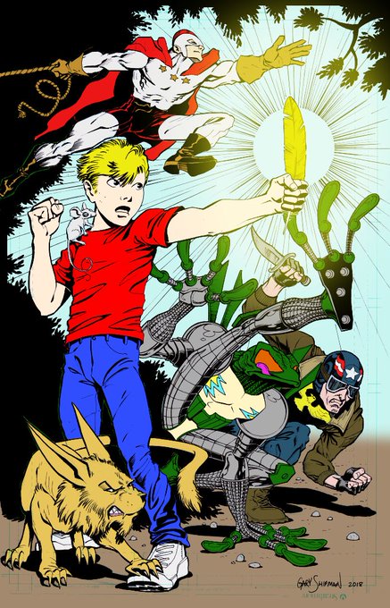 Flatted @GaryShipmanArt piece from his indiegogo https://t.co/CSjE963PD3 I'll probably shade it later, but it's gonna be challenge for me cuz metal and golden feather light #comicsgate @EthanVanSciver @AbacusMike @mbreitweiser #CyberFrog #Lonestar #PakinsLand #RedRooster