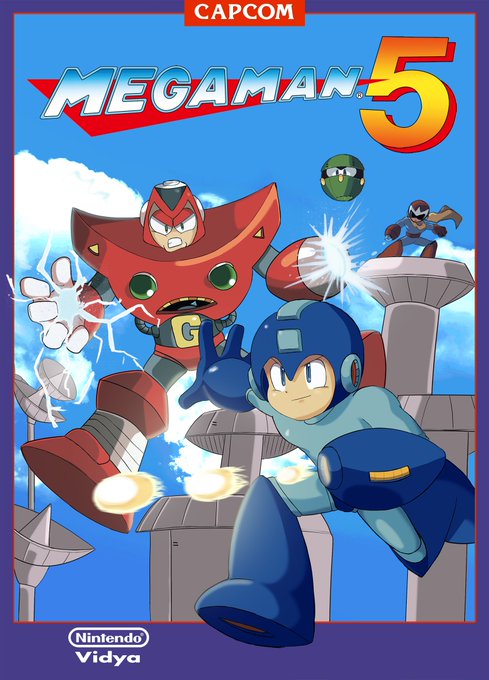 Joining this trend with Mega Man 5. #redrawgameboxart, get it trending bros Might do Real Bout Special next